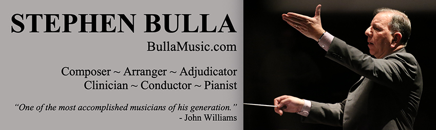 Welcome to BullaMusic.com, where you can learn about Stephen Bulla's music and recordings and contact him if you would like to commission a piece or engage him as a conductor, clinician or adjudicator. This is also the best source for information about the critically aclaimed trombone ensemble Spiritual to the 'Bone. Simply click a link or image above to learn more.